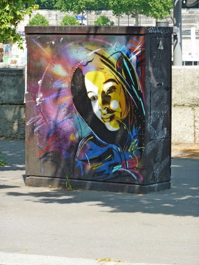 Où comment égayer la ville dans le nouveau 13ème avec des couleurs flashy tout en lui donnant un petit air BD ? L'imagination prend le pouvoir et un scénario ou plusieurs s'élaborent aussitôt dans la tête des promeneurs en quête d'aventures. A moins que cela soit un jeu, un puzzle à reconstituer, trouver la place de chaque image, combler les trous entre elles, bref être l'archéologue d'un scénario disparu. Mais peut être sommes nous aussi face à un nouveau tarot dont il faudrait interpréter chaque lame pour percer l'avenir...