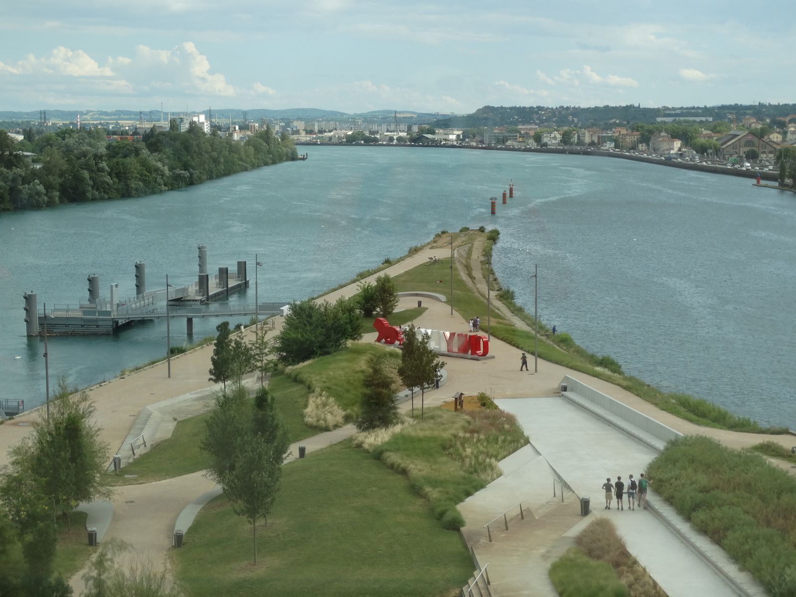 Sur le pallier on a une belle vue sur la confluence du Rhône et de la Saône.