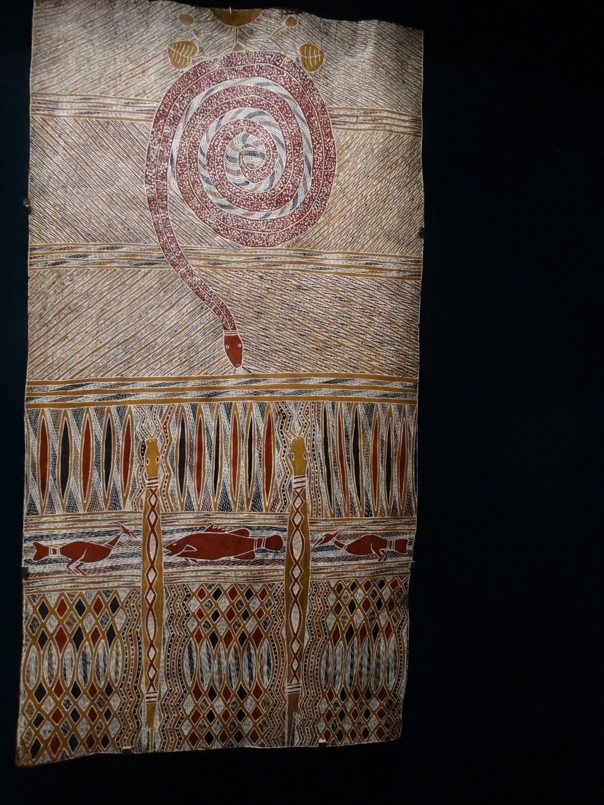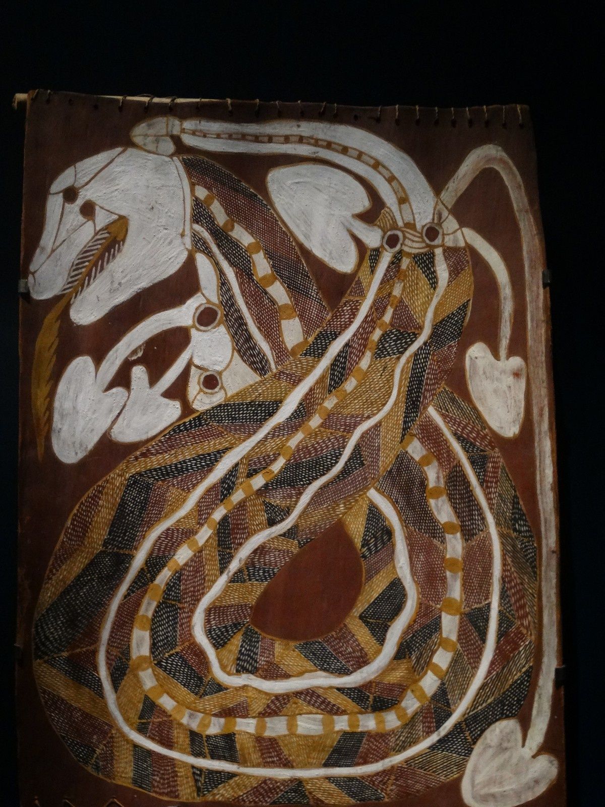 Il s'agit d'un autre mythe mais de la cosmogonie des aborigènes d'Australie pour qui la vie est liée à cette figure mythique. Associé à la mousson et à la fertilité ce créateur sommeille dans les trous d'eau, source de vie Il est aussi associé à d'autres serpents : les serpents éclairs qui crachent la foudre au moment de la mousson et font gonfler les eaux qui inondent la plaine.
